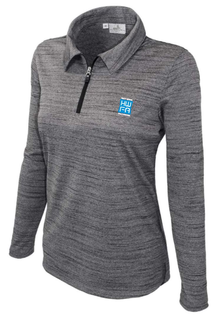 Ladies' Long Sleeve Quarter Zip Polo Tiger Stripe Jersey (480-TSJ) **THIS ITEM WILL HAVE AN EMBROIDERED LOGO** -5.2 oz, 100% Dry Wicking Poly