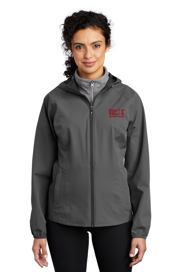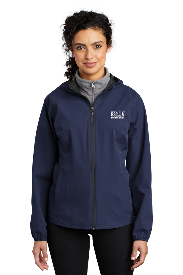 Ladies Essential Rain Jacket (L407) **THIS ITEM WILL HAVE AN EMBROIDERED LOGO** A year-round must-have this fully seam-sealed 8K/5K waterproof breathable 2.5-layer jacket has a DWR finish. It packs easily and gives great water-repellent wind-resistant performance. 100% polyester shell bonded to a waterproof laminate film with DWR finish 8 000MM fabric waterproof rating 5 000G/M2 fabric breathability rating Interior grid print Waterproof center front zipper Interior storm flap with chin guard Front zippered pockets Elastic cuffs Product Spec Sheet Color Swatch