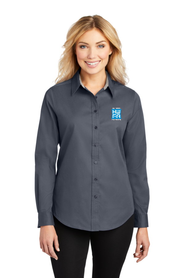Ladies Long Sleeve Easy Care Shirt EMB (L608) **THIS ITEM WILL BE EMBROIDERED** This comfortable wash-and-wear shirt is indispensable for the workday. Wrinkle resistance makes this shirt a cut above the competition so you and your staff can be too. 4.5-ounce 55/45 cotton/poly Traditional relaxed look Open collar Dyed-to-match buttons Adjustable cuffs White Athletic Gold Texas Orange Red Burgundy Coffee Bean Light Blue Navy Classic Navy Steel Grey Purple and Black have a Light Stone contrast neckband. Light Stone and Royal have a Classic Navy contrast neckband. Dark Green has a Navy contrast neckband. Product Spec Sheet Color Swatch