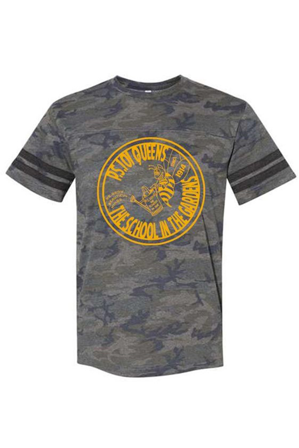 Description 4.5 oz., 100% combed ringspun cotton fine jersey, ribbed collar, shoulder-to-shoulder self-fabric back neck tape, contrast topstitched self-fabric sleeve stripes, cover stitched front and back yoke, double needle sleeves and bottom hem, side seam construction. Imprinted with PS101Q cirlce design on full front. Available in youth and adult sizes.