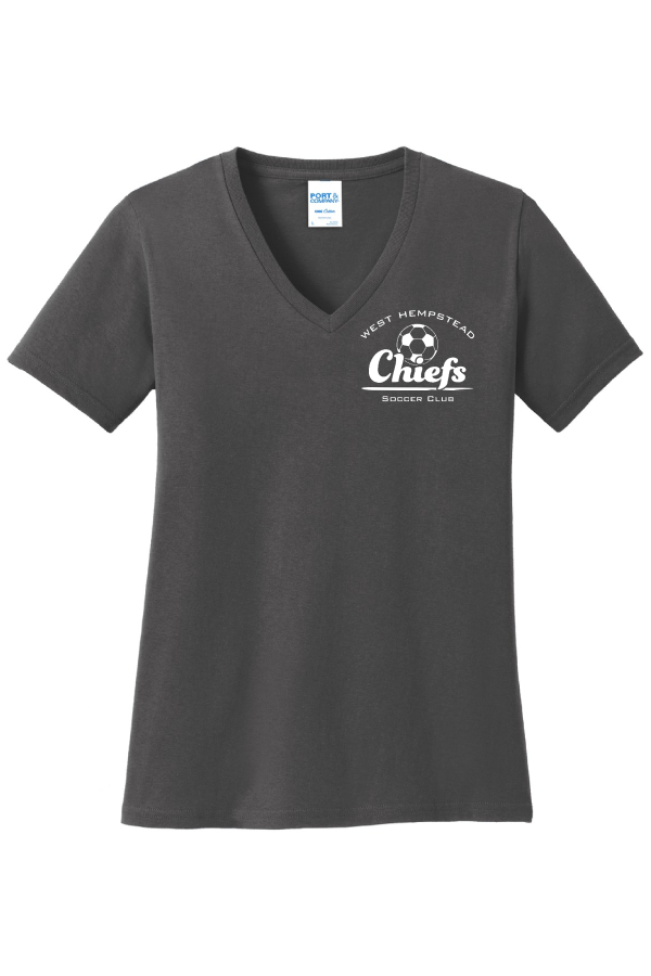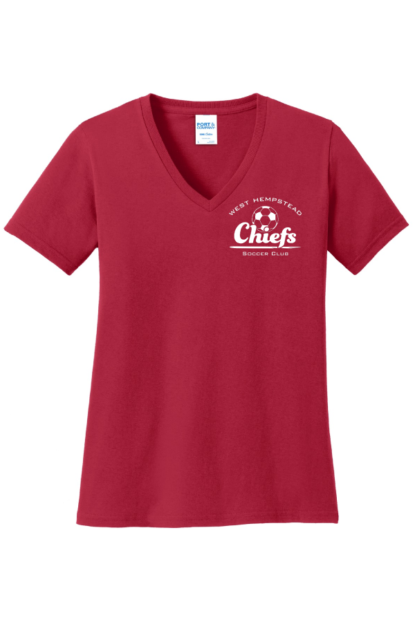 V-NECK SHIRT LADIES FIT Choice of 3 shirt colors Short-sleeve, v-neck shirt, 5.4-ounce 100% cotton side seamed with a contoured body for a feminine fit. Adults sizes only. Imprint on front left chest. Product Spec Sheet Size Chart