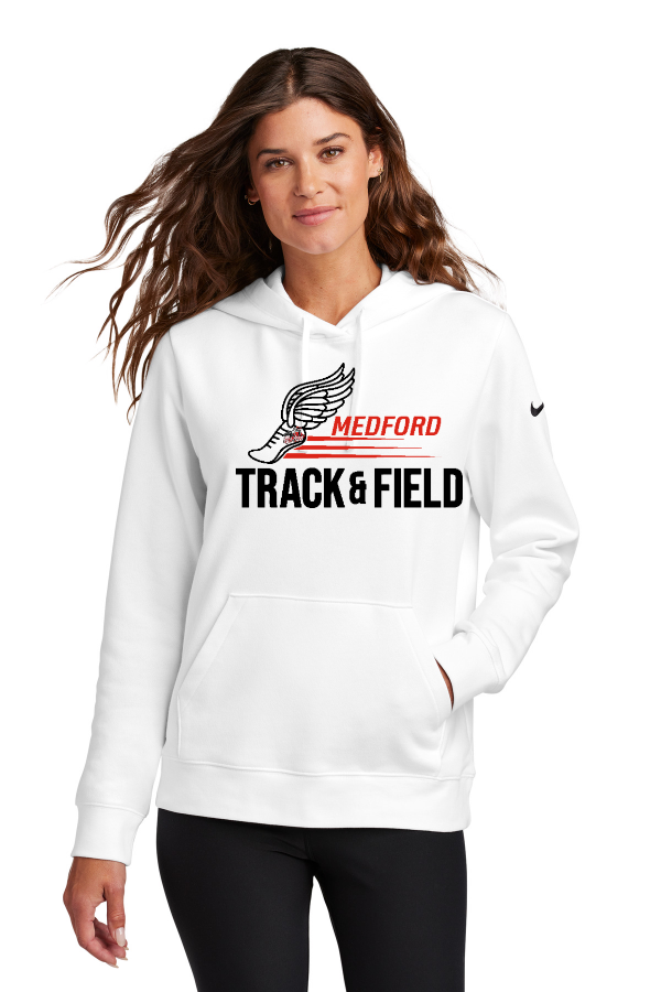 NIKE Women s Club Fleece Sleeve Swoosh Pullover Hoodie NKFD9889 Nike Women s Club Fleece Sleeve Swoosh Pullover Hoodie NKFD9889 Built with versatility in mind this brushed-back hoodie is perfect for work or play. Cozy and warm it is obvious why Club Fleece is Nike s bestselling fleece. Design details include a three-panel hood with dyed-to-match drawcords and a front pouch pocket. Rib knit cuffs and hem. A contrast Swoosh logo is embroidered on left sleeve. Made of 8.3-ounce 80/20 cotton/polyester. Product Spec Sheet