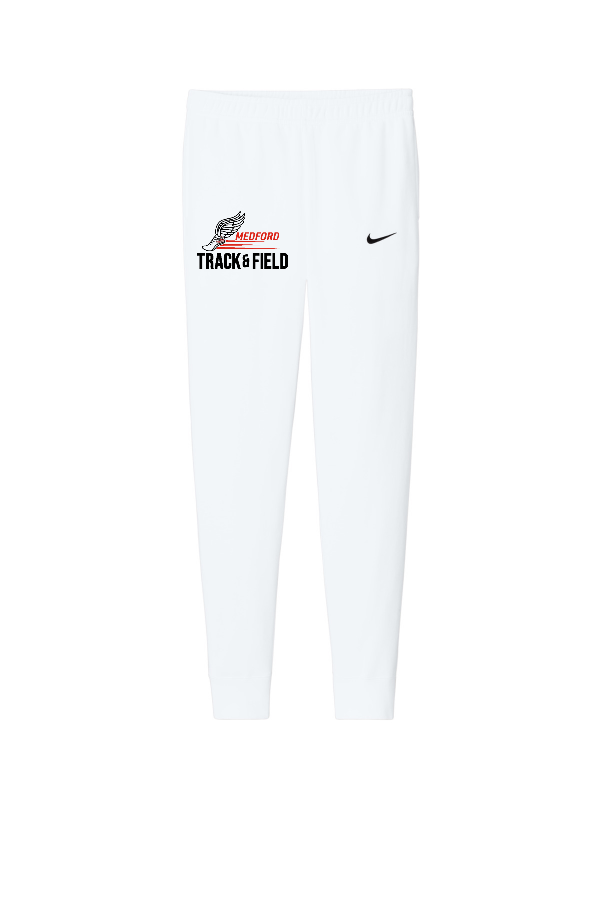 NIKE Club Fleece Jogger NKHM8045 Nike Club Fleece Jogger NKHM8045 Whether you re running laps or running errands this Nike jogger combines warmth style and performance. 8.2-ounce 80/20 cotton/polyester Interior dyed-to-match drawstrings at waist Two front pockets One back pocket with snap button Ribbed cuffs Embroidered Swoosh logo on left leg Product Spec Sheet