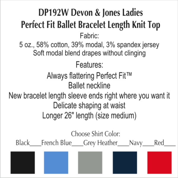 04 DP192W Devon & Jones Ladies Perfect Fit Ballet Bracelet-Length Knit Top