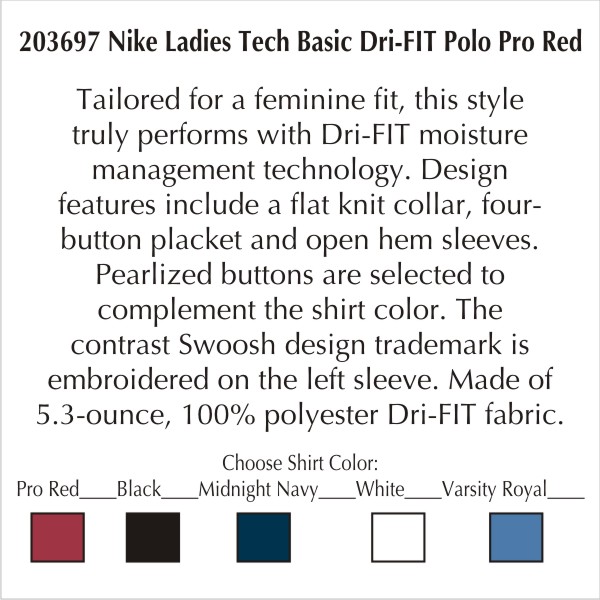 07 203697 Nike Ladies Tech Basic Dri-FIT Polo Pro Red