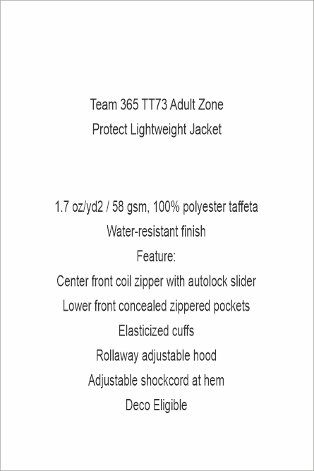 17 Team 365 TT73 Adult Zone Protect Lightweight Jacket with Left Chest Embroidery