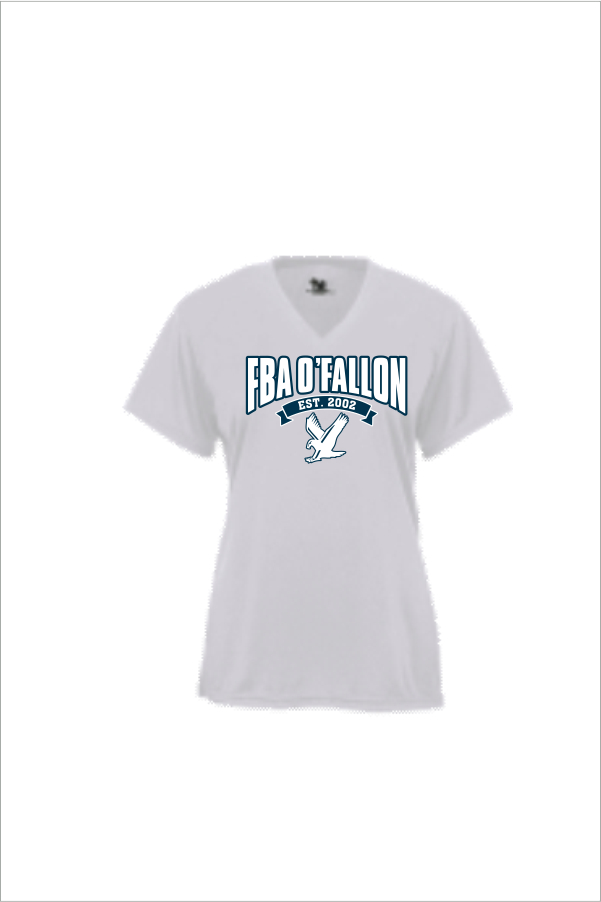 07 Badger 4162 Womens BCore V Neck Short Sleeve Performance Tee with 2 Color Front Print