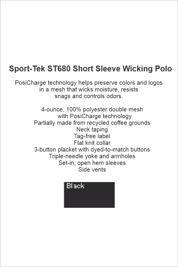 01 Sportek ST680 Short Sleeve Wicking Polo Black with Two Color Left Chest Embroidery