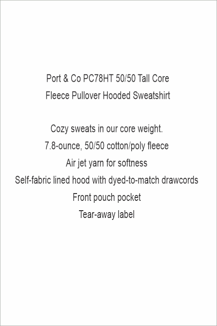09 Port & Co PC78HT 50/50 Tall Core Fleece Pullover Hooded Sweatshirt Dark Heather Grey with Left Chest Screenprint