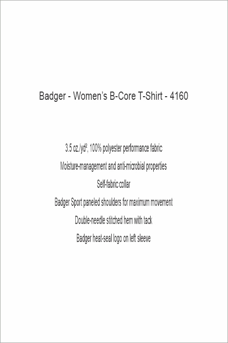 11 Badger 4160 Ladies B Core Graphite Short Sleeve Performance Tee with Left Chest Screenprint
