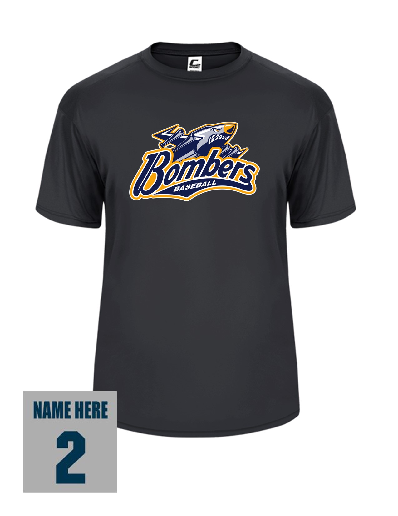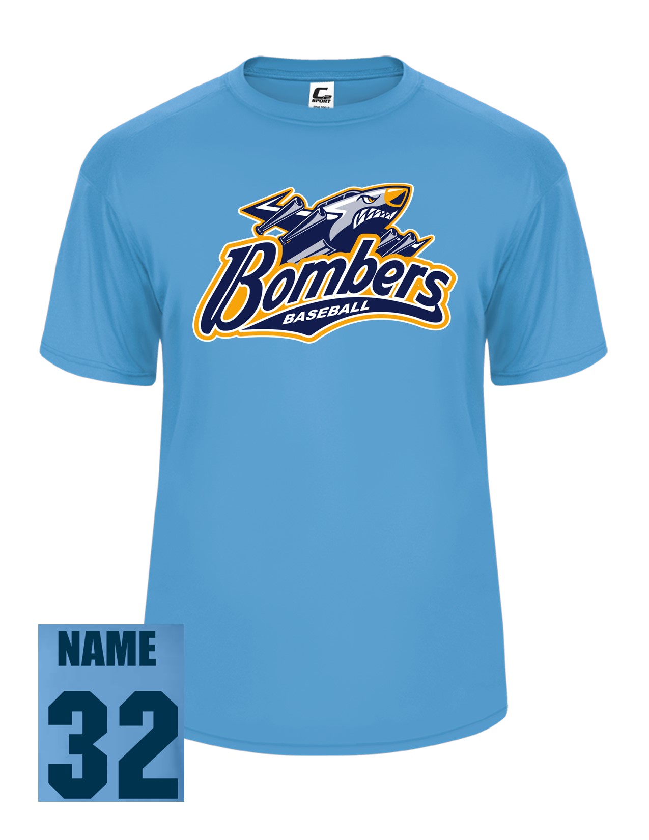 16a Badger 5100 Adult 100% Poly Wicking Performance Short Sleeve with Bombers Plane Logo