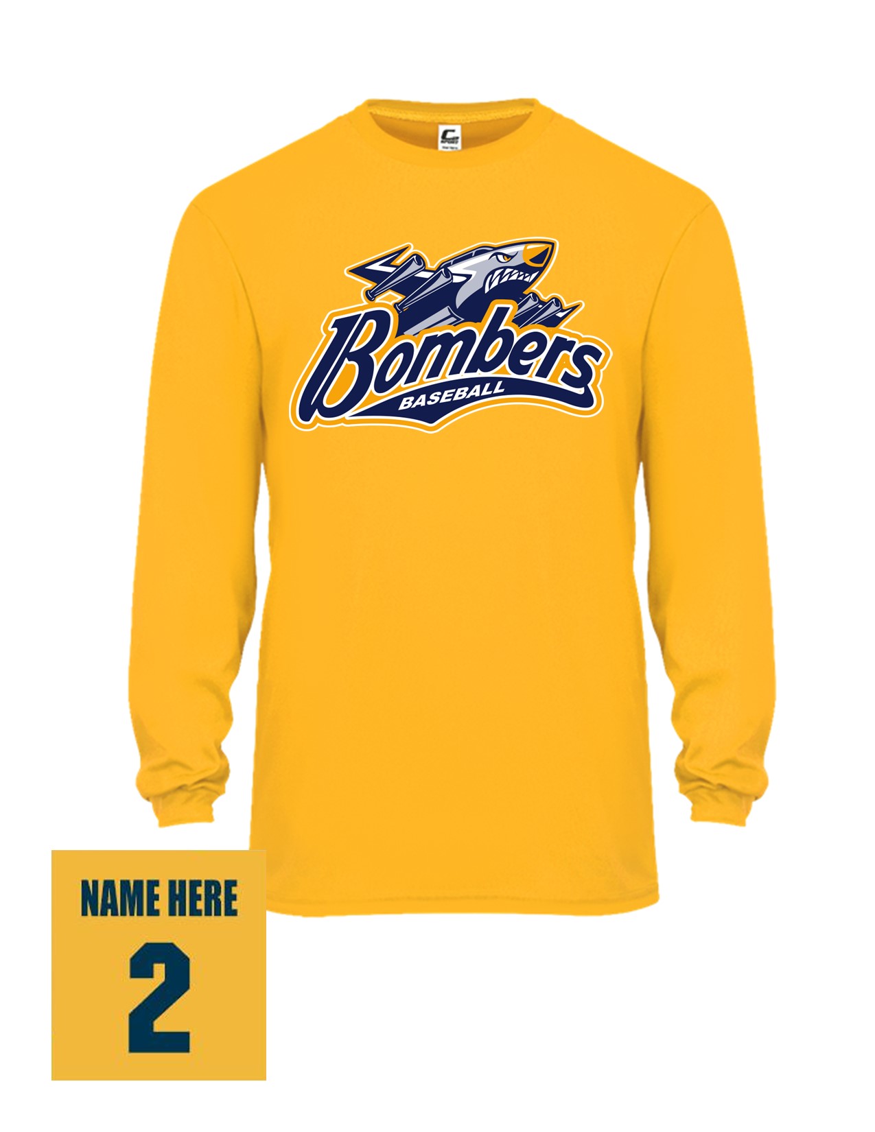 56a Badger 5104 Adult C2 Performance 100% Poly Long Sleeve T-Shirt with Bombers Plane Logo