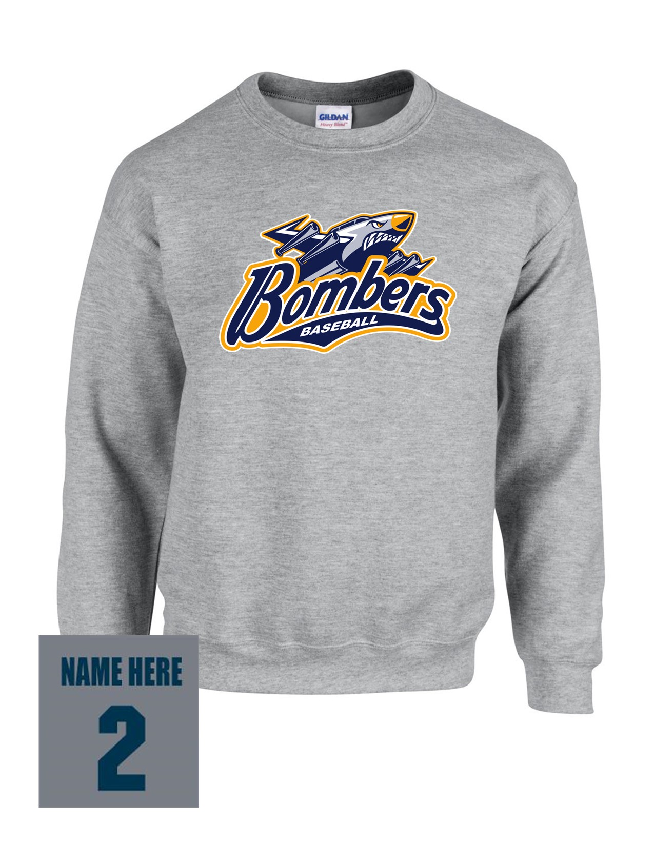 72a Gildan G180B Youth Heavy Blend 50/50 Fleece Crew with Bombers Plane Logo