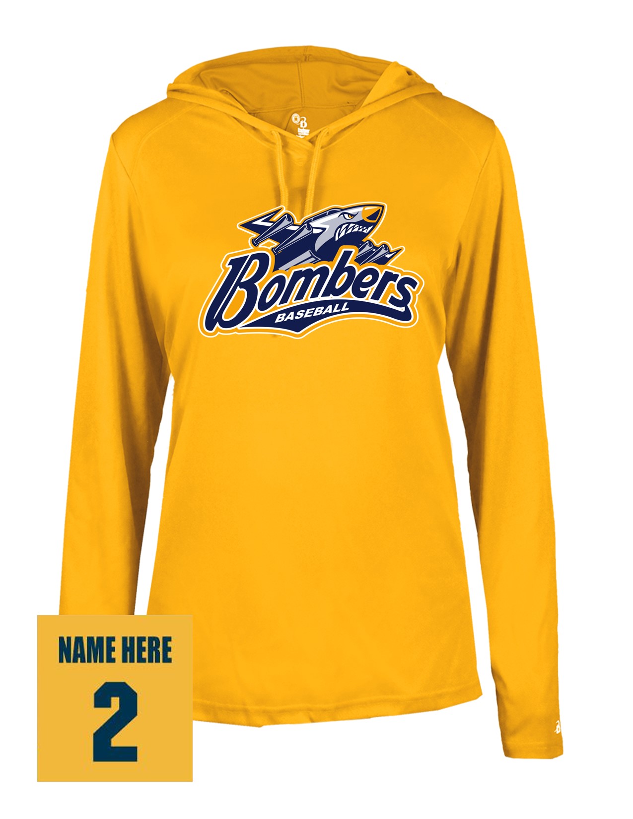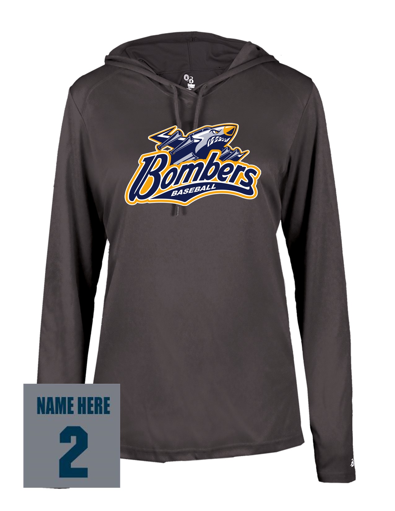 77a Badger 4165 Womens B-Core Performance 100% Poly Wicking Hooded Tee with Bombers Plane Logo