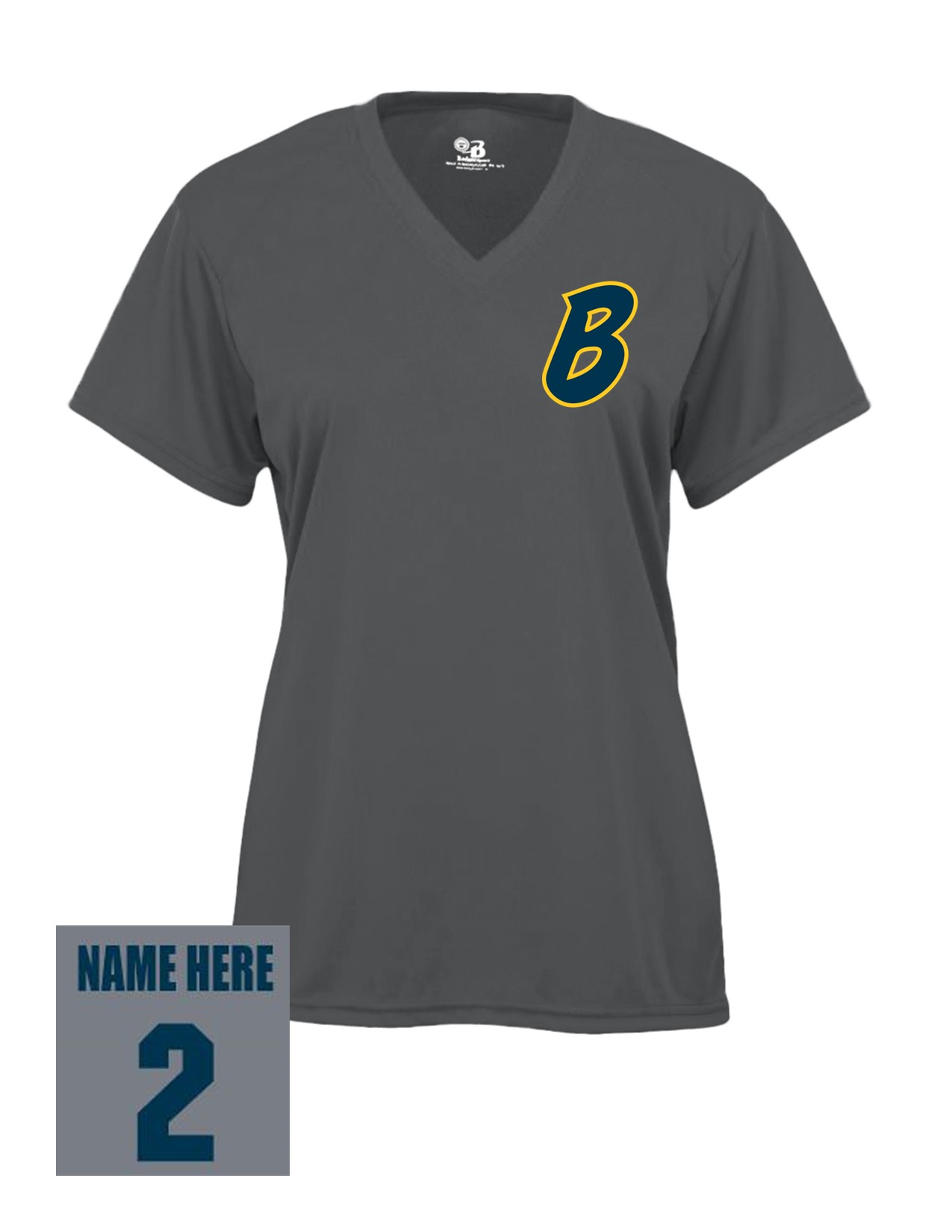 22b Badger 4162 Women's B-Core Short Sleeve V-Neck with Bombers "B" LC Logo
