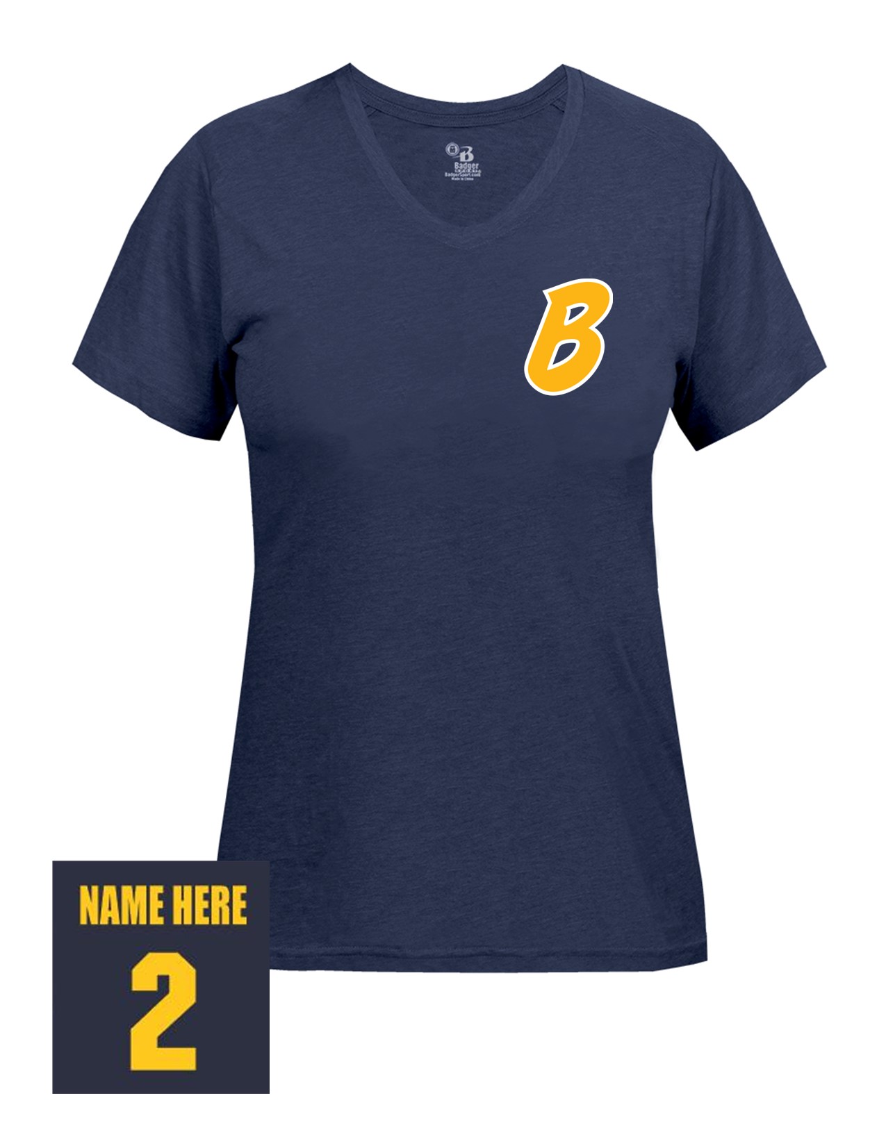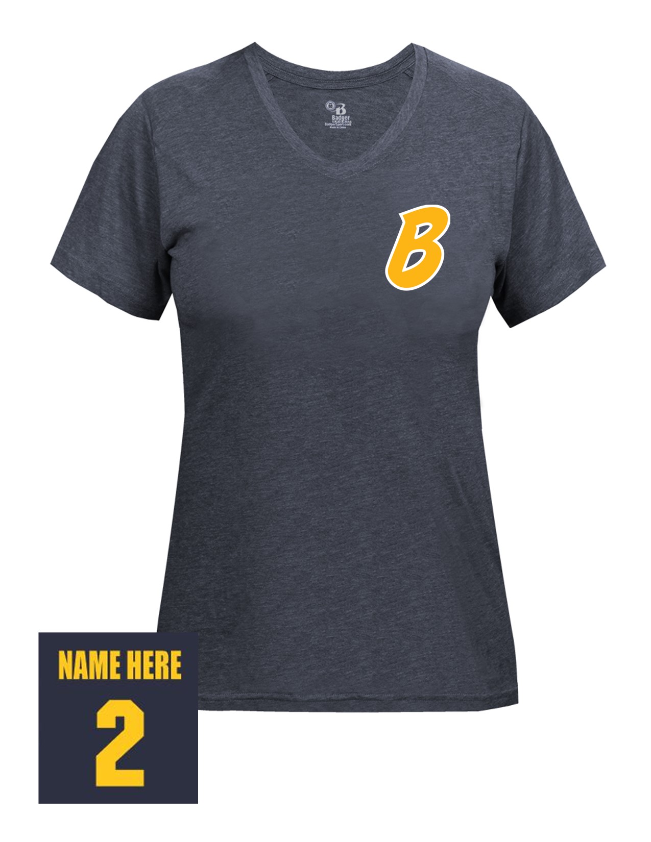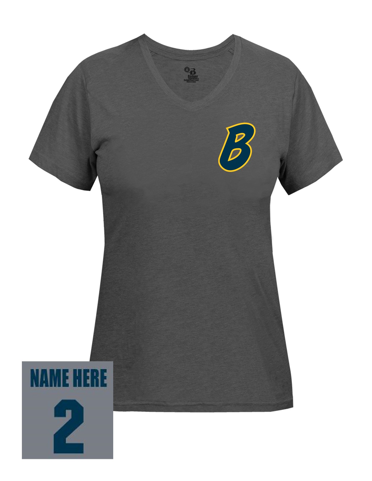 23b Badger 4962 Women's Tri-Blend Short Sleeve Tee with Bombers "B" LC Logo