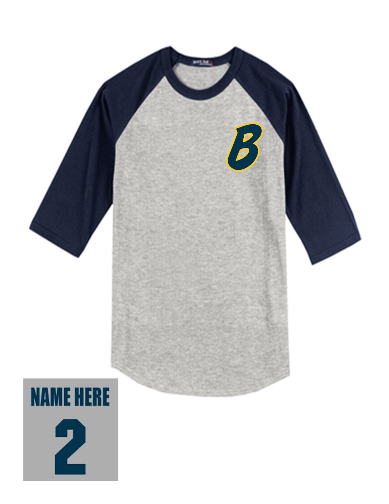 50b Sport-Tek YT200 Youth Baseball 3/4 Raglan 100% Cotton Shirt with Bombers "B" LC Logo