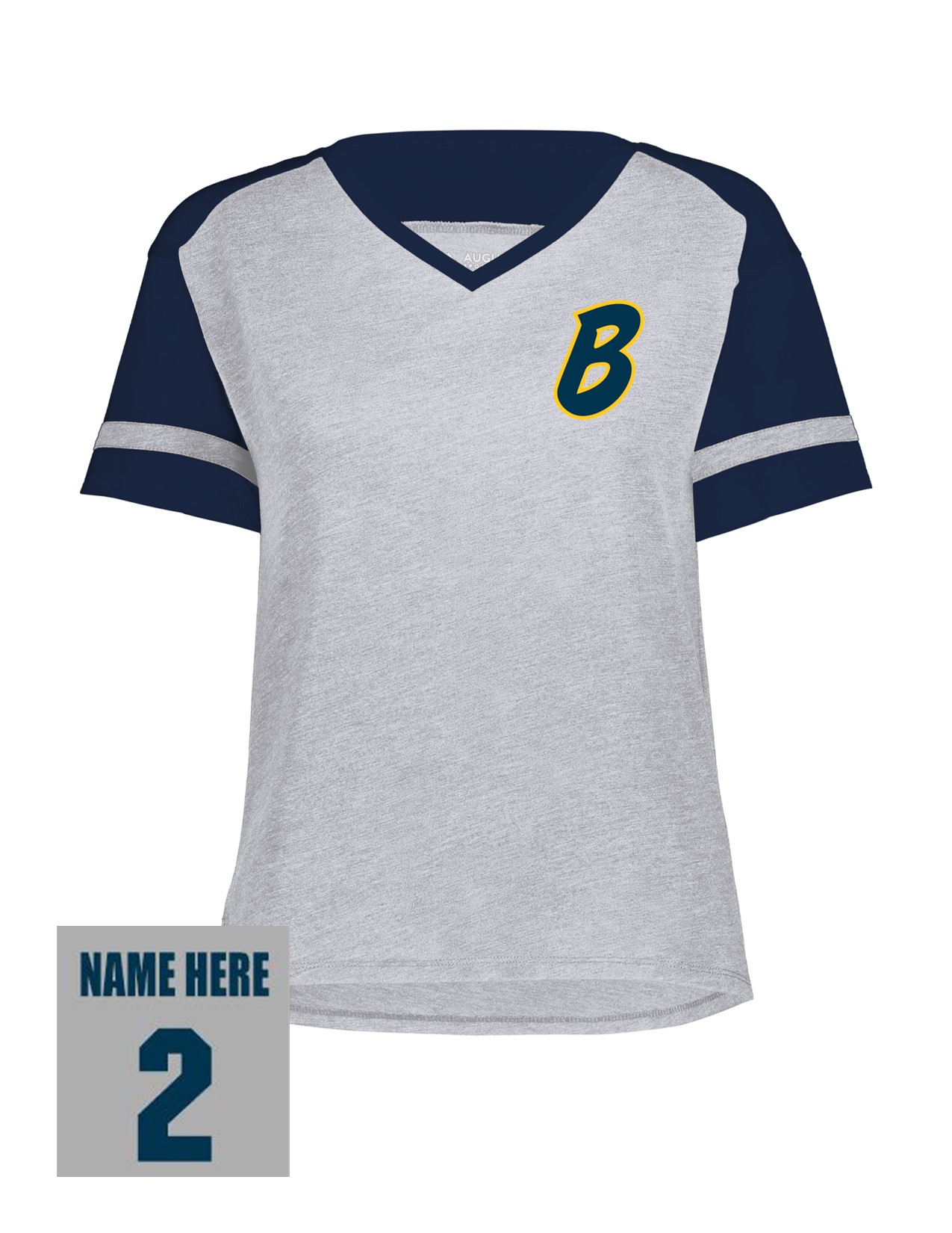 51B Augusta 2914 Ladies Fanatic 2.0 Short Sleeve Tee with with Bombers "B" LC Logo