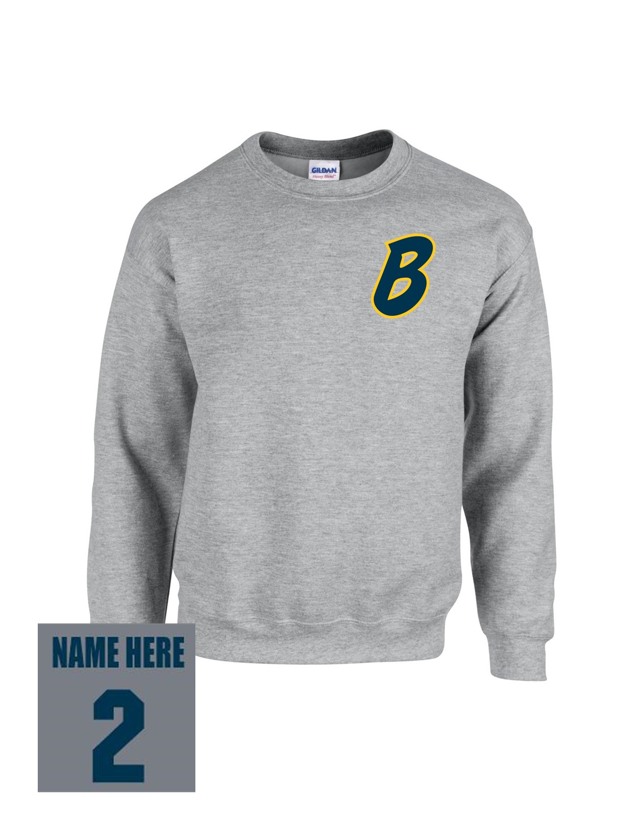 72b Gildan G180B Youth Heavy Blend 50/50 Fleece Crew with Bombers "B" LC Logo