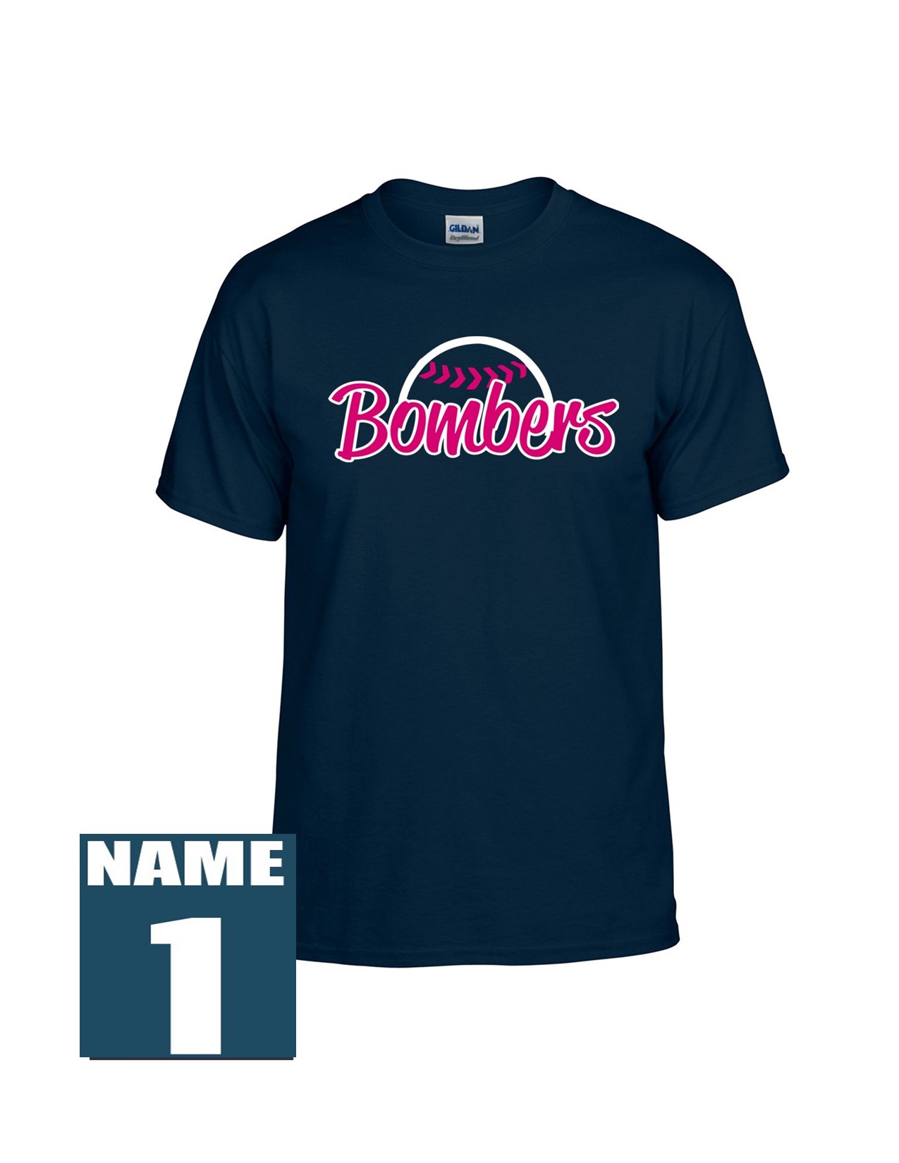 01e Gildan G800 ADULT Dry Blend 50/50 Short Sleeve Shirt with Ladies Bomber Front Print