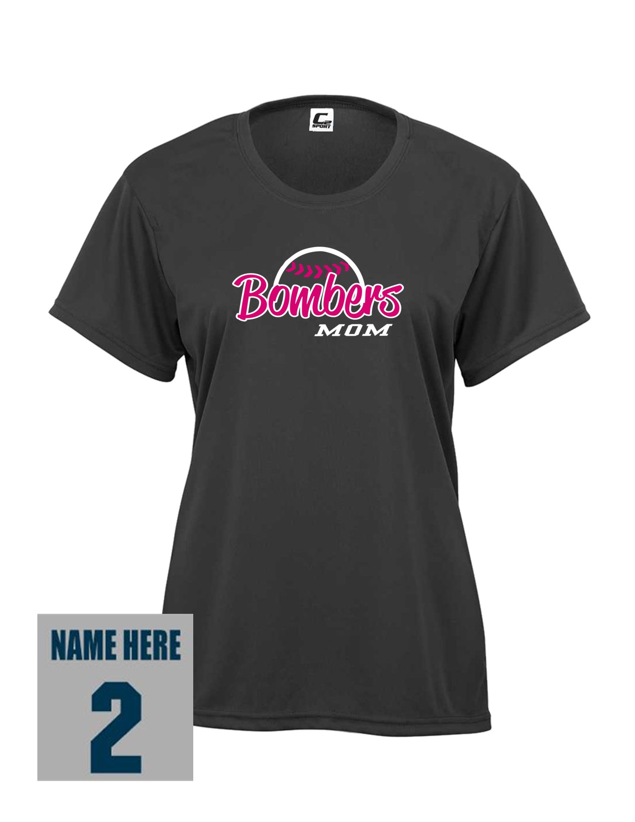 18f Badger 5600 Ladies 100% Poly Wicking Performance Short Sleeve with Mom's Bomber Front Print