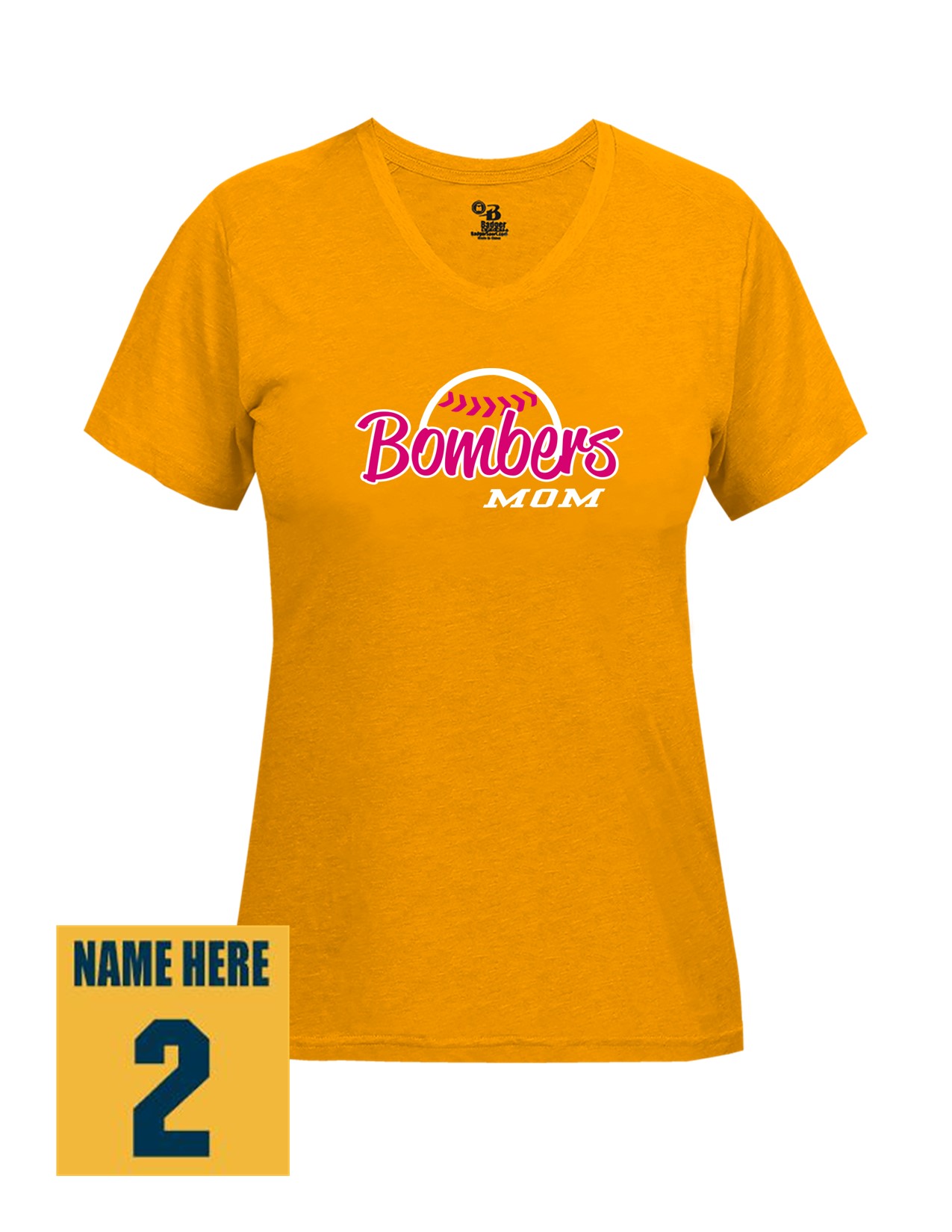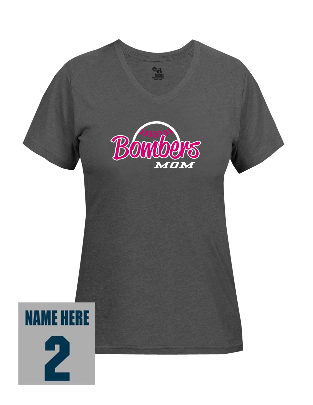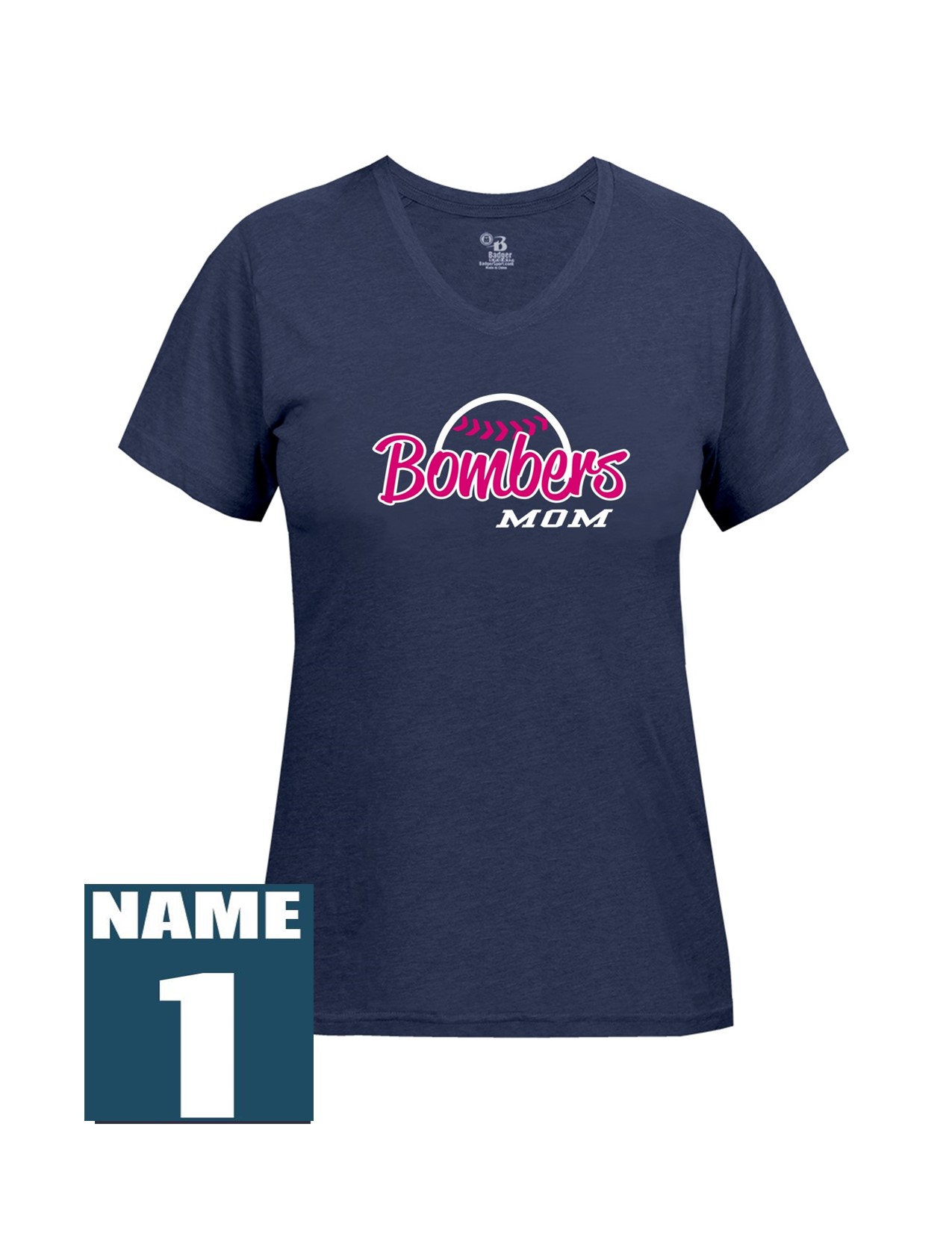 23f Badger 4962 Women's Tri-Blend Short Sleeve Tee with Mom's Bomber Front Print