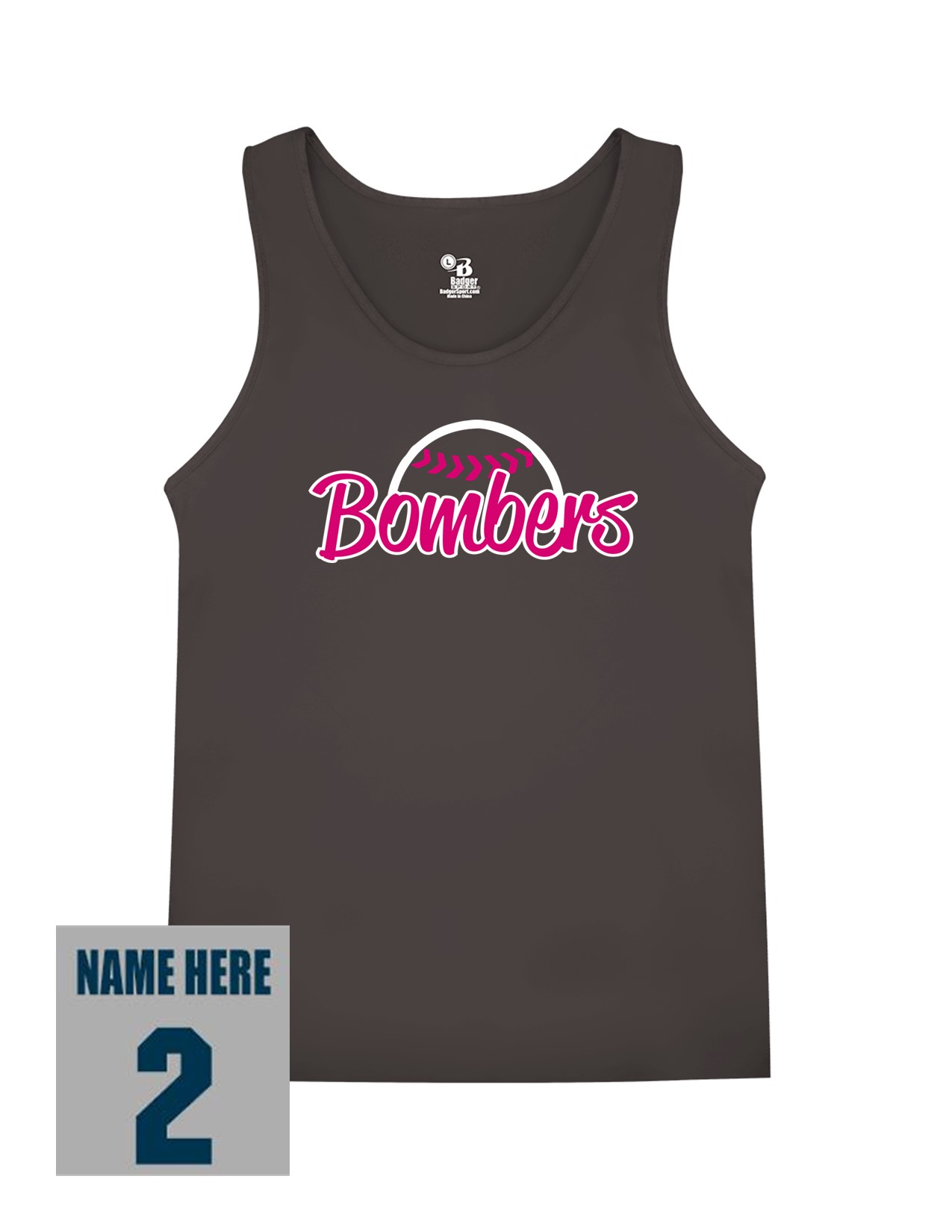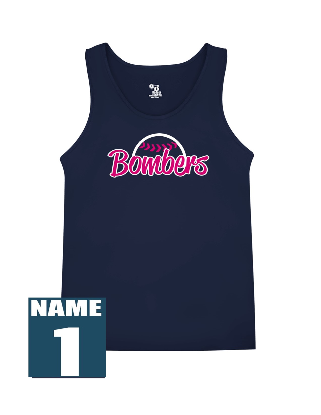 34e Badger 8962 Women's B-Core 100% Polyester Tank with Ladies Bomber Front Print