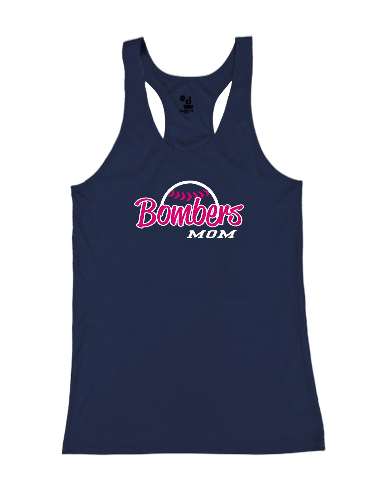 37f Badger 4166 Women's B-Core 100% Polyester Racerback Tank with Mom's Bomber Front Print