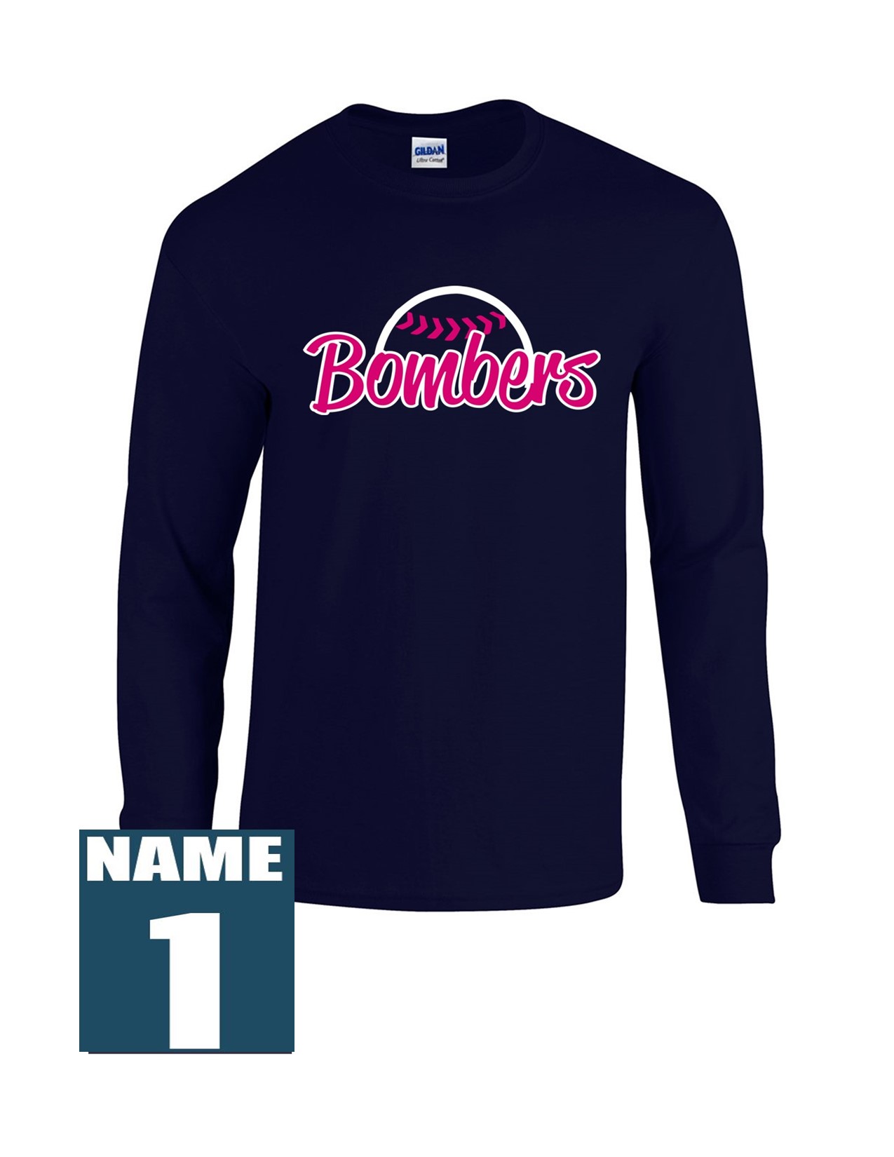 53e Gildan G540 ADULT Heavy Cotton 100% Long Sleeve Shirt with Ladies Bomber Front Print