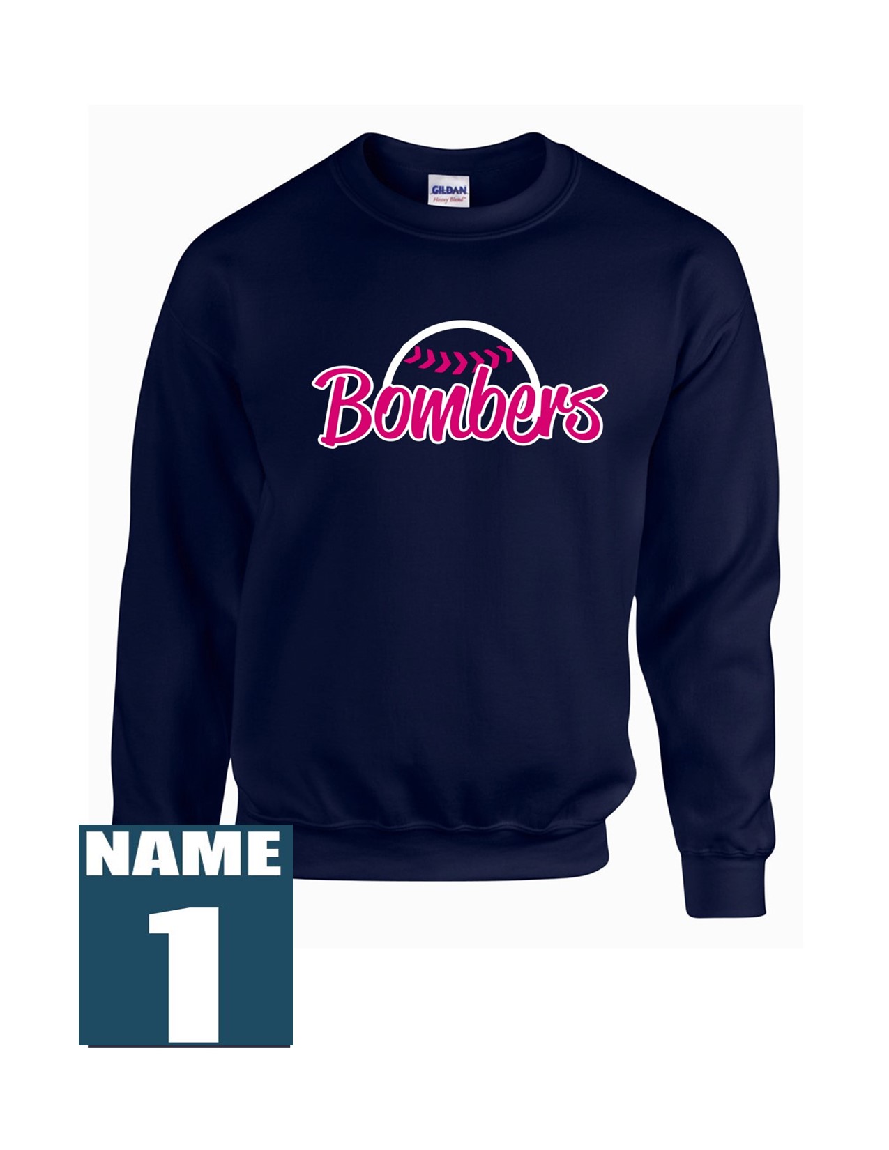71e Gildan G180 Adult Heavy Blend 50/50 Fleece Crew with Ladies Bomber Front Print