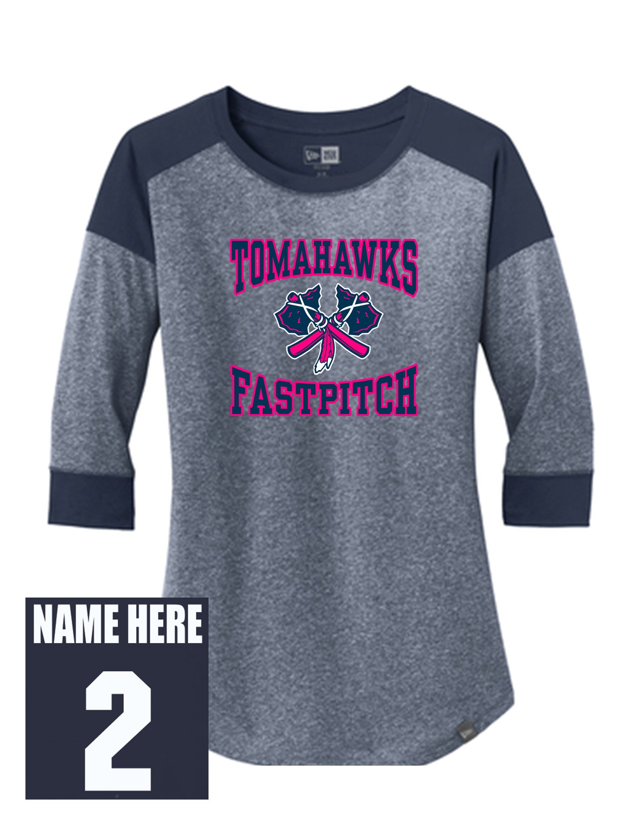 47b New Era LNEA104 Ladies Heritage Blend 3/4 Sleeve Baseball Raglan Tee with Pink Front Print