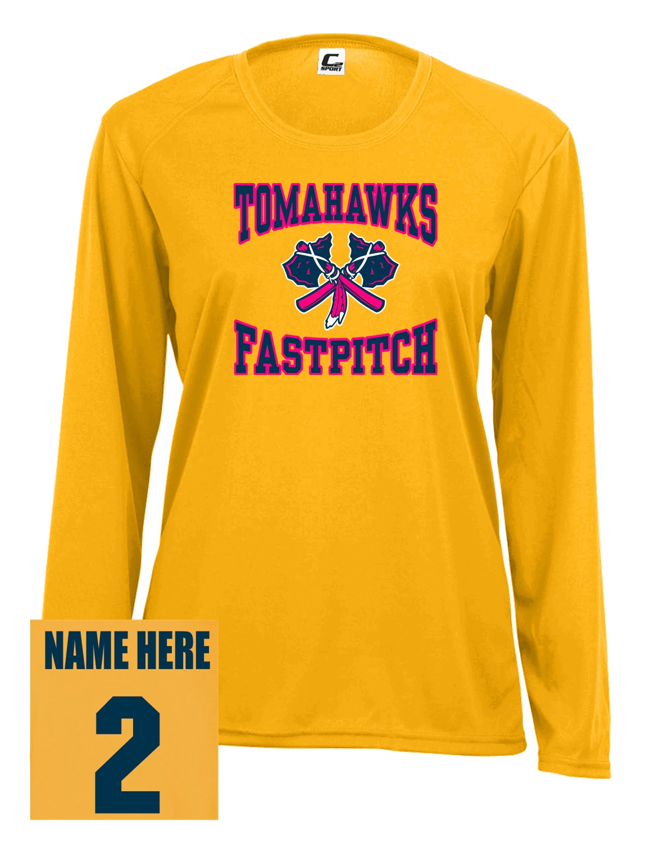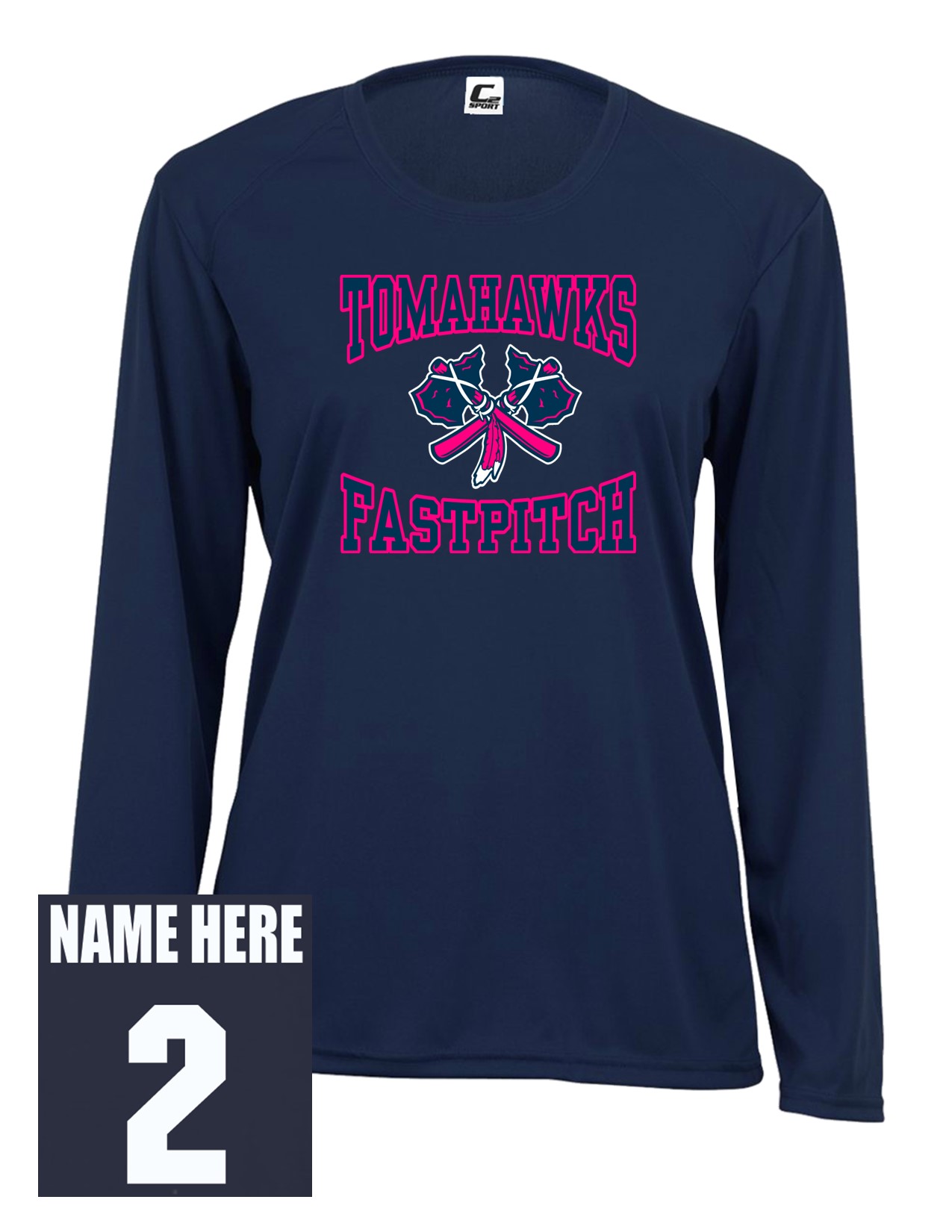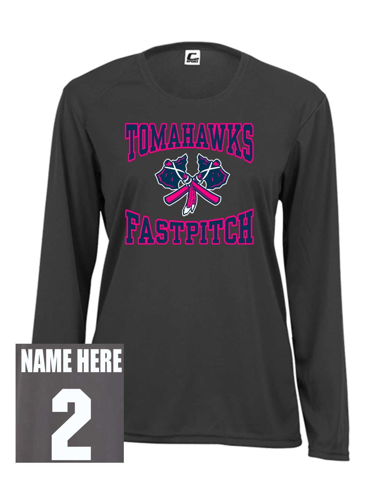 58b Badger 5604 Ladies C2 Performance 100% Polyester Long Sleeve T-Shirt with Pink Front Print