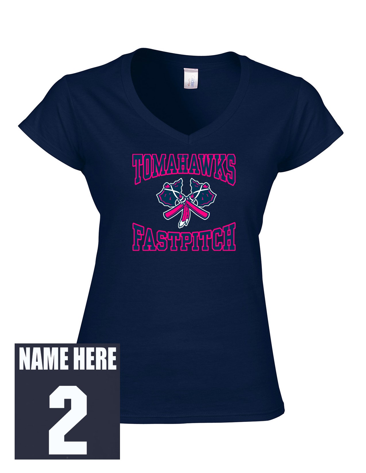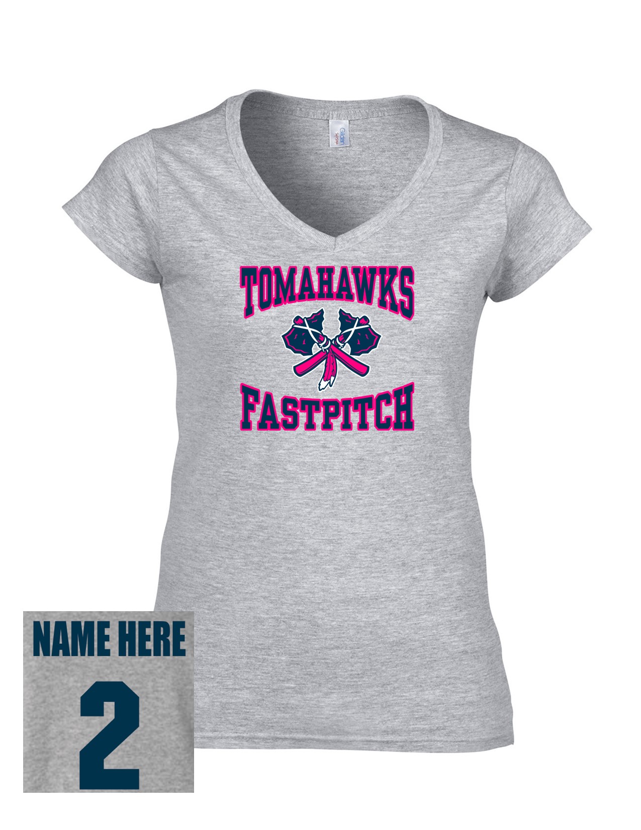 06b Gildan G64VL Women's Softstyle V-Neck Short Sleeve with Pink Front Print