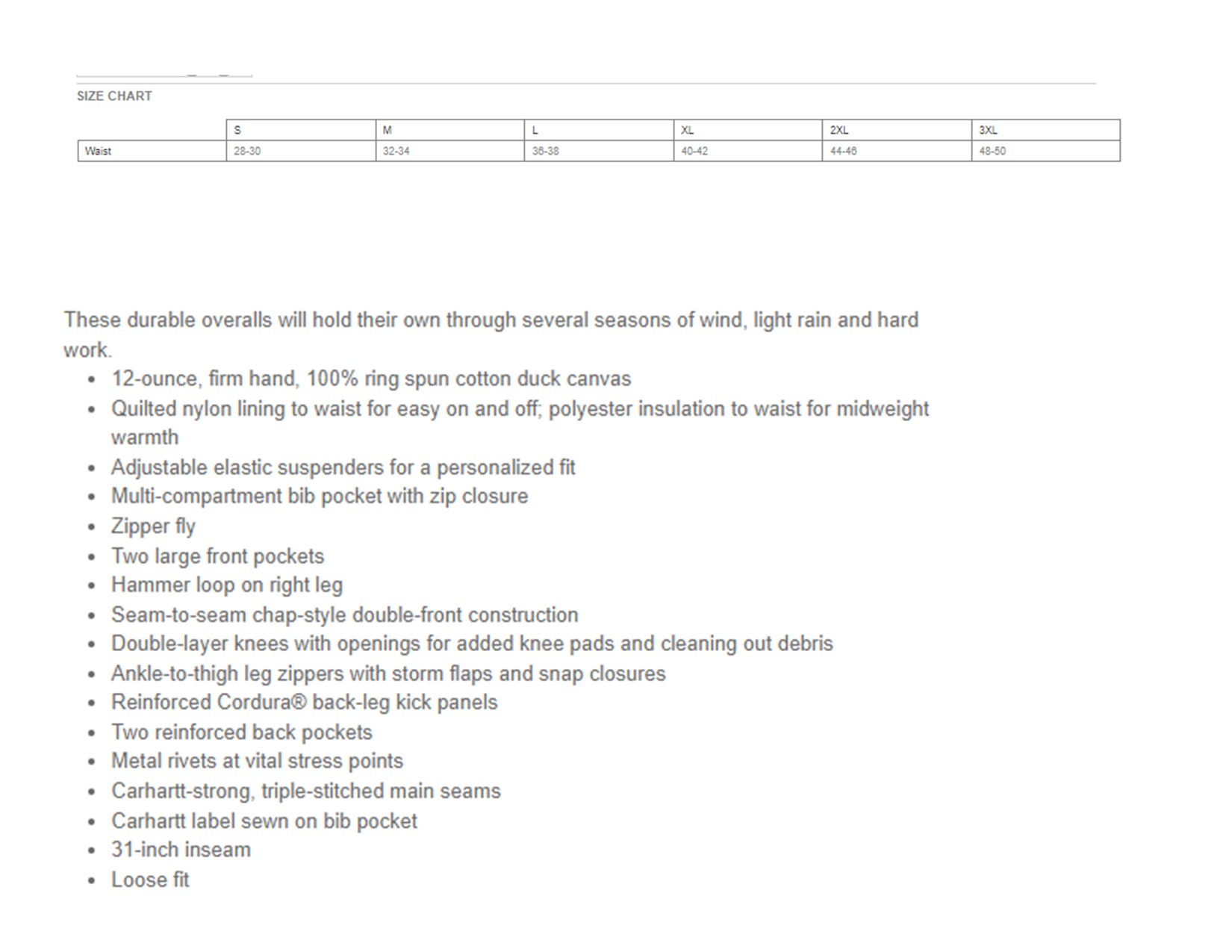 23 CT104393 Firm Duck Insulated Bib Overalls - REGULAR