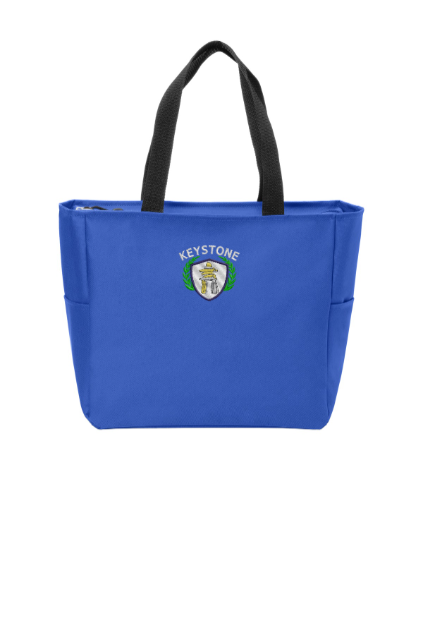 Keystone Embroidered Essential Tote Bag Port Authority Essential Zip Tote. BG410 There s plenty of room to hold the day s essentials in this must-have tote that comes in lots of colors and features a secure zippered top closure. 600 denier polyester canvas Over-the-shoulder web handles Two large end pockets Dimensions: 12.5 h x 13.5 w x 6.5 d Approx. 1 097 cubic inchesNote: Bags not intended for use by children 12 and under. Includes a California Prop 65 and social responsibility hangtag. Product Spec Sheet