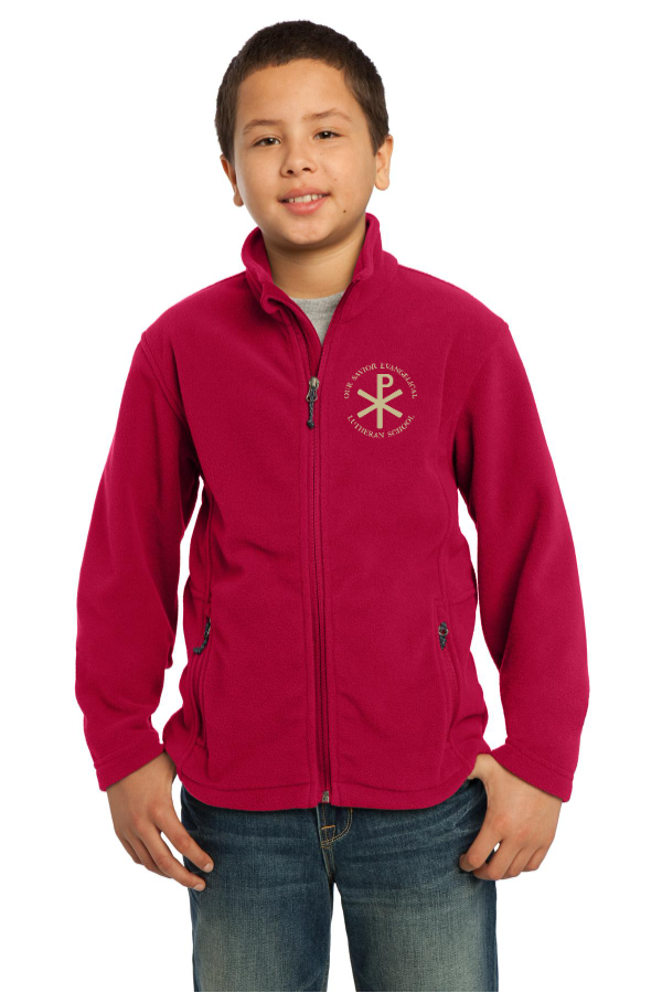 Youth Value Fleece Jacket-Embroidered Logo-Y217 Port Authority Youth Value Fleece Jacket. Y217 This exceptionally soft low-pill midweight fleece jacket will keep you warm during everyday excursions and it s offered at an unbeatable price. 8.3-ounce 100% polyester Twill-taped neck Reverse coil zipper Chin guard Bungee cord zipper pulls Front zippered pockets Open cuffs Product Spec Sheet Color Swatch