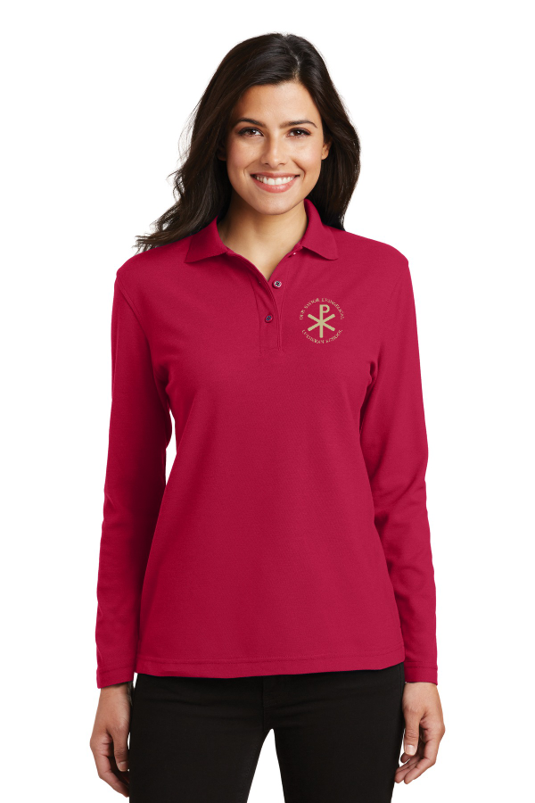 Ladies Silk Touch Long Sleeve Polo Port Authority Ladies Silk Touch Long Sleeve Polo. L500LS A favorite for years our Silk Touch polo is soft supple and easy to care for. The silky smooth pique knit resists wrinkles while the classic long sleeve style looks great on everyone. 5-ounce 65/35 poly/cotton pique Flat knit collar Double-needle armhole seams and hem 3-button reverse placket Metal buttons with dyed-to-match plastic rims Open hem sleeves Side vents Product Spec Sheet Color Swatch