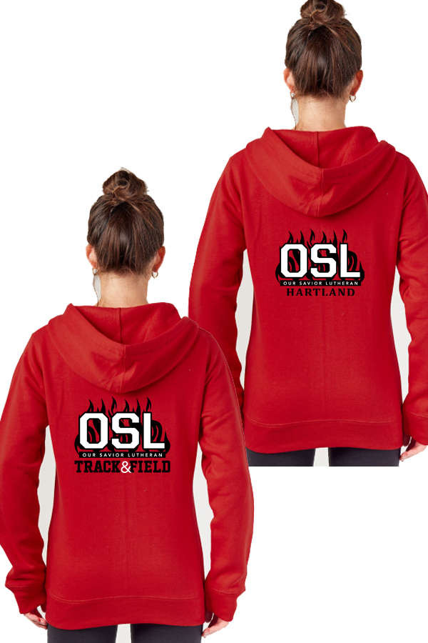 *Red Sweatshirt with Flames Track & Field Logo -Full Back