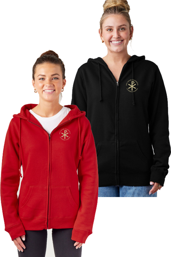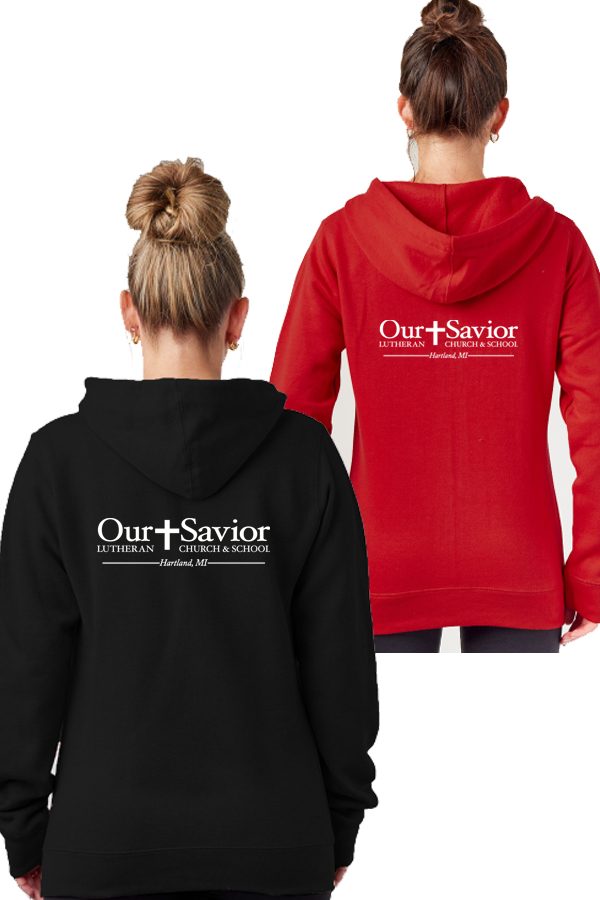 *Red Sweatshirt with Our Savior with Cross logo -Full Back