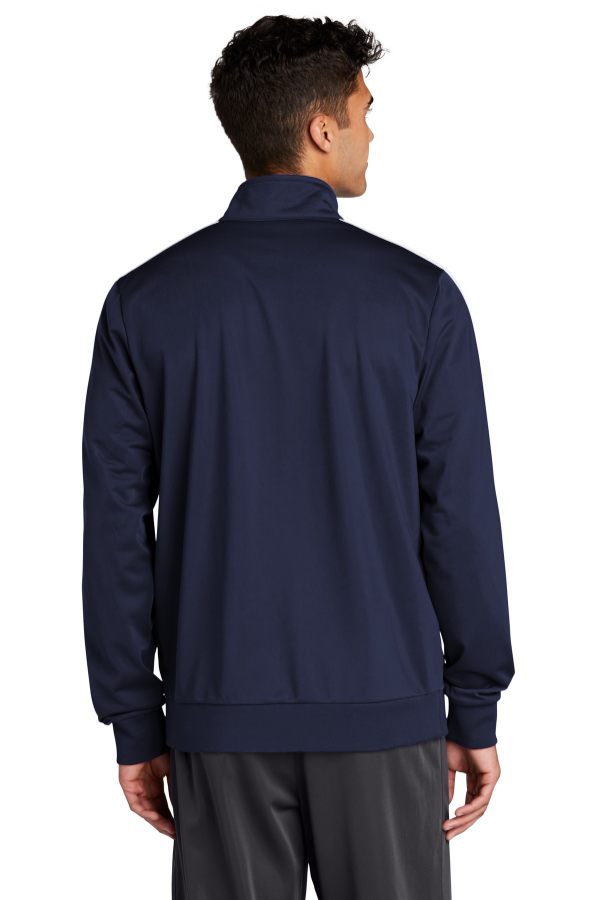 Adult Tricot Sleeve Stripe Track Jacket-Embroidered Logo-JST94 Sport-Tek Tricot Sleeve Stripe Track Jacket. JST94 The classic tricot track jacket with pieced stripes and rib knit details. 100% polyester tricot 100% polyester rib knit cuffs and hem Soft-brushed backing Cadet collar Tag-free label Reverse coil zipper Pieced stripe on shoulders and sleeves Front pockets Product Spec Sheet
