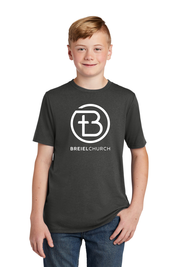 Youth Logo Tee with white print District Youth Perfect Tri Tee. DT130Y This triblend tee is perfectly soft and comfortable. 4.5-ounce 50/25/25 poly/combed ring spun cotton/rayon 32 singles1X1 rib knit neckShoulder to shoulder taping Tear-away tagPlease note: This product is transitioning from woven labels to tear-away labels. Your order may contain a combination of both labels.Tri-Blend fabric infuses each garment with unique character. Please allow for slight color variations. Due to the heat sensitivity of tri-blend fabrics special care must be taken throughout the printing process. Consult your decorator or ink supplier for best printing practices. Product Spec Sheet Color Swatch