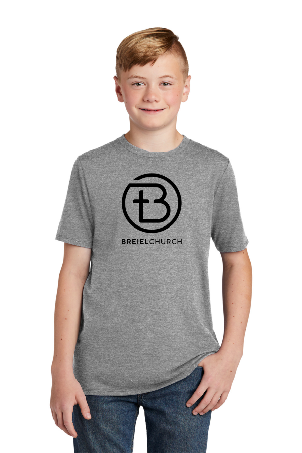 Youth Logo Tee with black print District Youth Perfect Tri Tee. DT130Y This triblend tee is perfectly soft and comfortable. 4.5-ounce 50/25/25 poly/combed ring spun cotton/rayon 32 singles1X1 rib knit neckShoulder to shoulder taping Tear-away tagPlease note: This product is transitioning from woven labels to tear-away labels. Your order may contain a combination of both labels.Tri-Blend fabric infuses each garment with unique character. Please allow for slight color variations. Due to the heat sensitivity of tri-blend fabrics special care must be taken throughout the printing process. Consult your decorator or ink supplier for best printing practices. Product Spec Sheet Color Swatch
