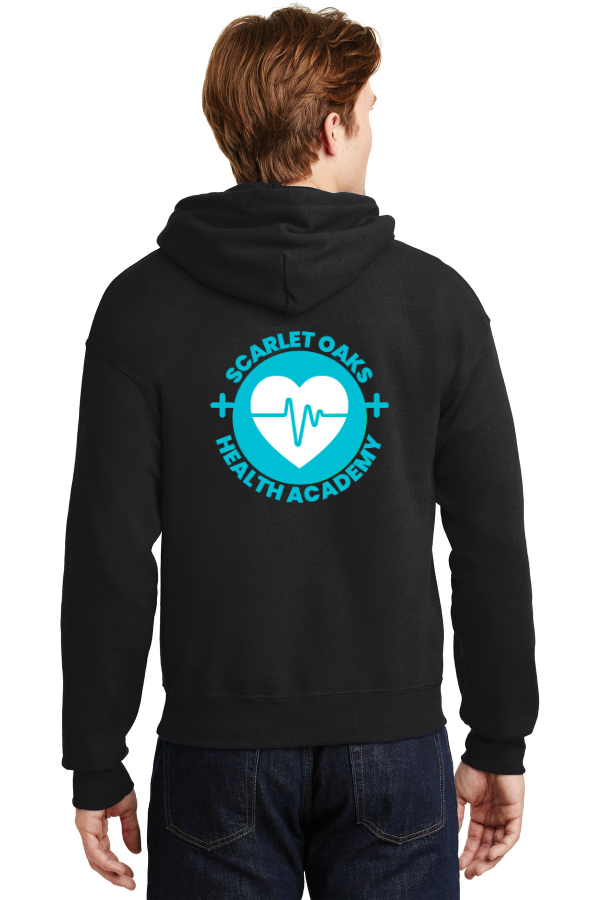 Description 8-ounce 50/50 cotton/poly Double-needle stitching at waistband and cuffs Double-lined hood with dyed-to-match drawcord 1x1 rib knit cuffs and waistband with spandex Front pouch pocket