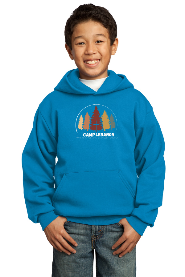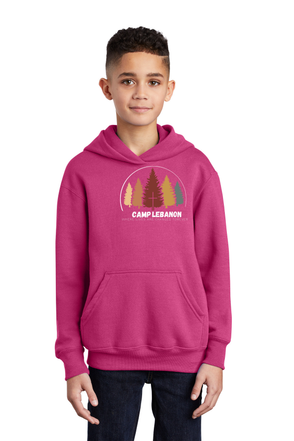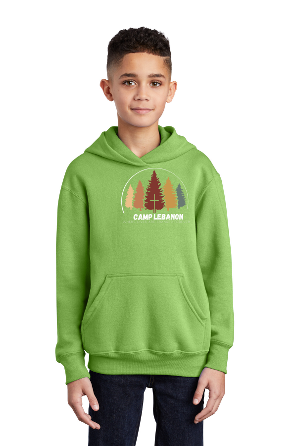 YOUTH TREE HOODIE Port & Company - Youth Core Fleece Pullover Hooded Sweatshirt. PC90YH Cozy sweats in our core weight. 7.8-ounce 50/50 cotton/poly fleece Air jet yarn for softnessNo drawcord at hoodRemovable tag for comfort and relabeling Product Spec Sheet Color Swatch