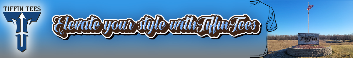 Cotton T Shirt w/ screen printed Tiffin IOWA front/center design in gold.