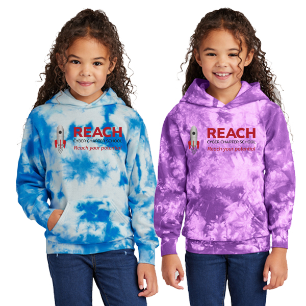 Port & Company Youth Crystal Tie-Dye Pullover HoodieCrafted for comfort color and pattern explode on this tie-dye hoodie. 7.8-ounce 80/20 cotton/poly fleece Sewn with dyeable thread Individually hand dyed Self-fabric lined hood No drawcords Front pouch pocket The tie-dye process infuses each garment with unique character. Please allow for slight color variation. To view color options offered, see product details link.Product MeasurementsProduct Spec Sheet Color Swatch |