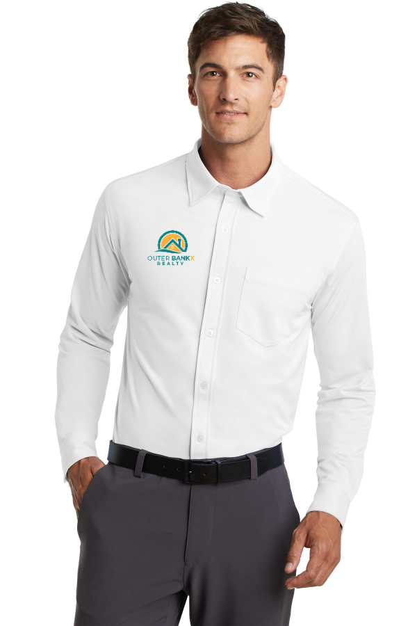 Description Designed for modern office pros and urban commuters. Our sleek dress shirt fuses the comfort of a knit with the structure of a woven shirt. It wicks moisture has ease of movement and an unencumbered fit. 3.8-ounce 100% micropique polyester tricot. Versatile collar that can be worn open or buttoned down. Left chest pocket Rounded and adjustable cuffs.