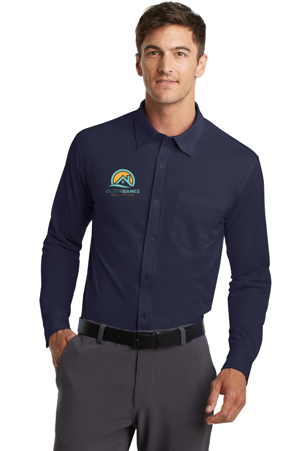 Knit Dress Shirt Port Authority Dimension. K570 Designed for modern office pros and urban commuters. Our sleek dress shirt fuses the comfort of a knit with the structure of a woven shirt. It wicks moisture has ease of movement and an unencumbered fit. 3.8-ounce 100% micropique polyester tricot. Versatile collar that can be worn open or buttoned down. Left chest pocket Rounded and adjustable cuffs. Product Spec Sheet Color Swatch