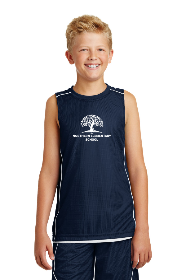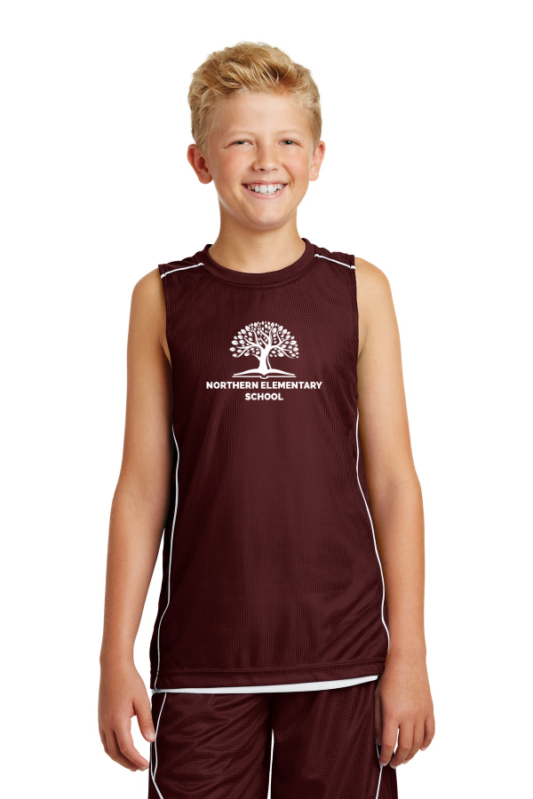 Required Gym Mesh Tee Sport-Tek Youth PosiCharge Mesh Reversible Sleeveless Tee. YT555 This reversible moisture-wicking essential has piping on shoulders and side panels. PosiCharge technology keeps colors vibrant. 3.2-ounce 100% polyester mesh with PosiCharge technology. White mesh reverse with colored piping. Rib knit neck. Double-layer construction with open individually hemmed layers. Product Spec Sheet Color Swatch