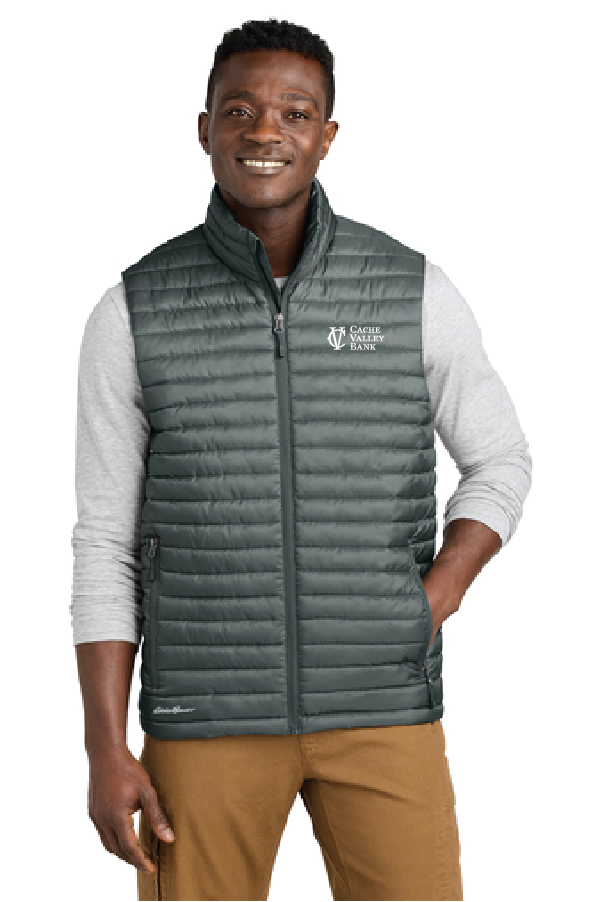 Packable Quilted Vest EB516Eddie Bauer Packable Quilted Vest EB516Designed with traditional quilt lines this insulated vest is built for warmth and weather-resistant performance. Features include full-length interior storm flap with chin guard exposed molded zippers with Eddie Bauer logo pulls zippered hand pockets and a slight drop tail hem. Includes an embroidery access pocket. Packs into zippered left hand pocket. Contrast Eddie Bauer heat transfer logo on right hem. Made of 100% polyester ripstop and 3.8-ounce 100% polyester blown fill. PU coating on back of shell. Durable water-repellent (DWR) finish. |
